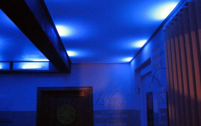 Absolut im Trend ist die Möglichkeit, mit Lichtdecken und einer LED RGB Farblichtsteuerung eine hinterleuchtete Decke oder Wand zu gestalten.